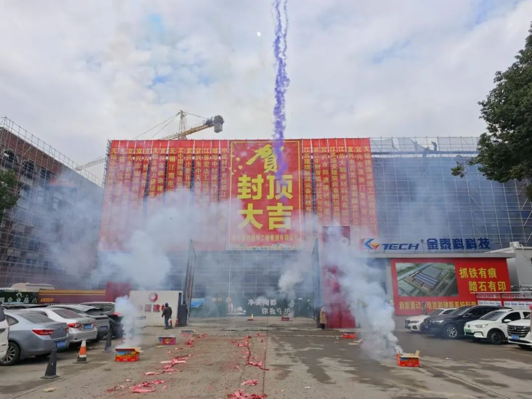 儀式現(xiàn)場(chǎng),隨著封頂大吉的吉時(shí)到來,煙花綻放、鞭炮齊鳴,熱烈的掌聲和歡呼聲,大家共同見證這一歷史性時(shí)刻。