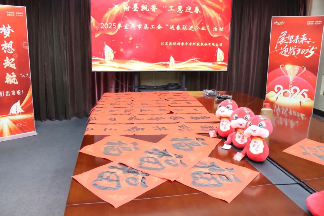 祥龍辭歲,靈蛇納福。1月24日,市總工會攜宜興市書法協(xié)會書法家蒞臨遠(yuǎn)航精密開展“送春聯(lián)進(jìn)企業(yè)”走訪慰問活動,把黨和政府的關(guān)心關(guān)懷和工會組織的溫暖送到企業(yè)。