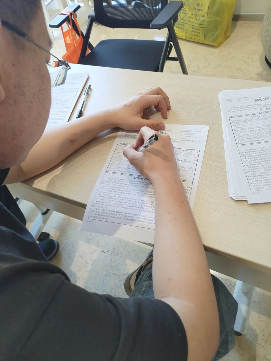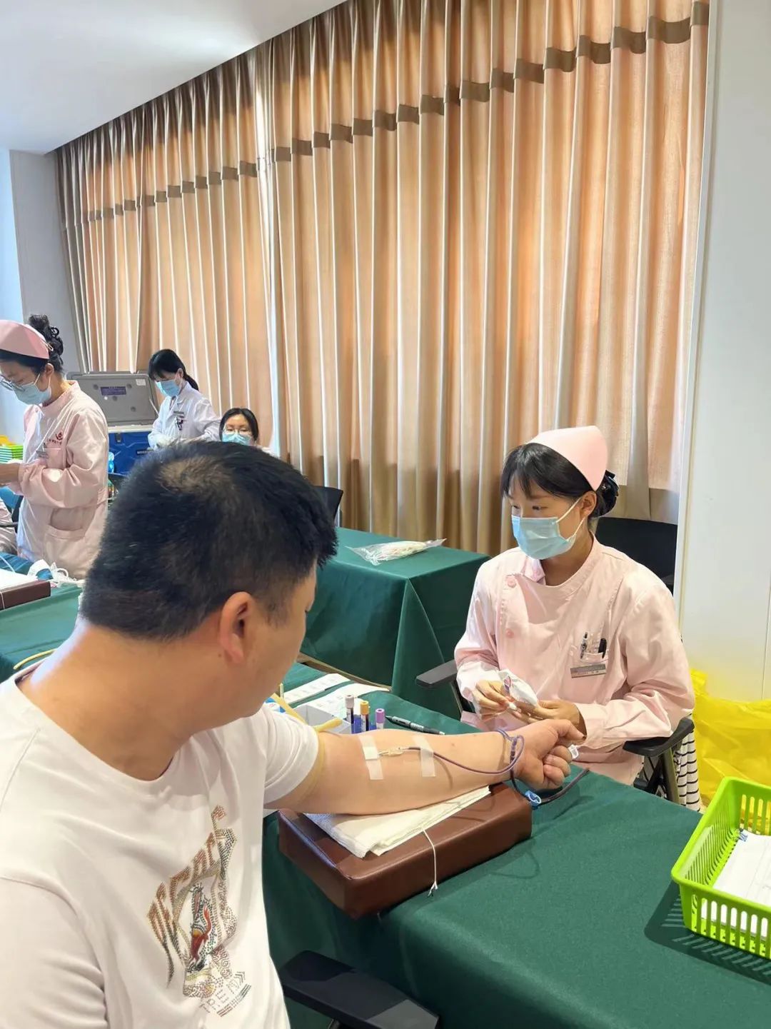 活動(dòng)現(xiàn)場(chǎng),在工作人員的幫助和指導(dǎo)下,大家有序填寫登記表、配合醫(yī)護(hù)人員進(jìn)行測(cè)量血壓、抽血化驗(yàn)等健康體檢。待確認(rèn)后進(jìn)入采血區(qū)參與獻(xiàn)血,他們紛紛伸出胳膊,涓涓熱血從手臂緩緩流向儲(chǔ)血袋,匯聚成一股溫暖的力量,傳遞著愛與希望,為生命續(xù)航。