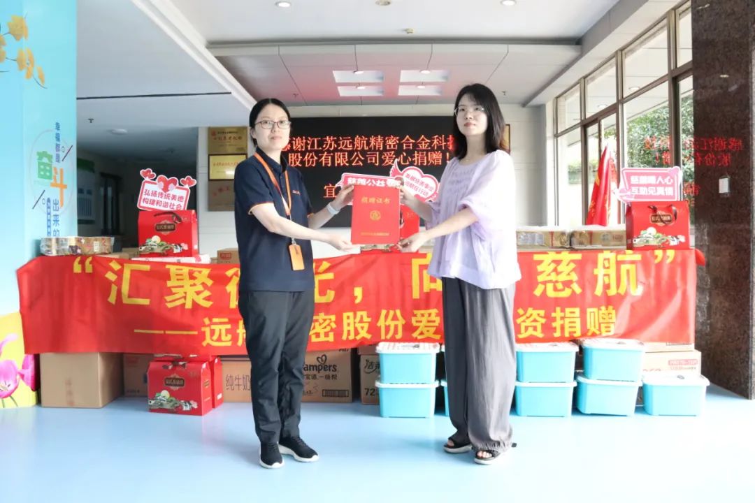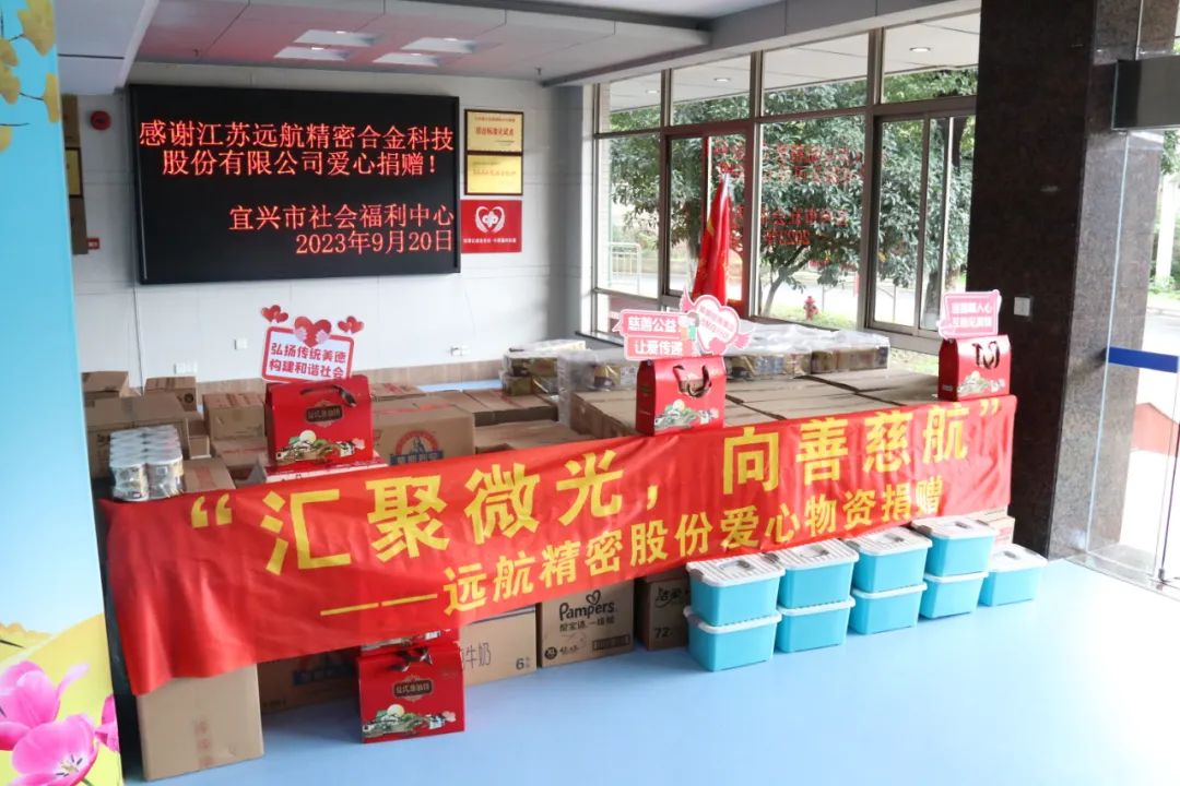 為進一步弘揚慈善精神,傳播慈善理念,積極響應政府“慈善一日捐”活動倡議,9月20日,江蘇遠航精密合金科技股份有限公司赴宜興市社會福利中心開展“匯聚微光,向善慈航”愛心捐贈活動。市社會福利中心領(lǐng)導、遠航精密黨支部、工會主要負責人等出席捐贈儀式。